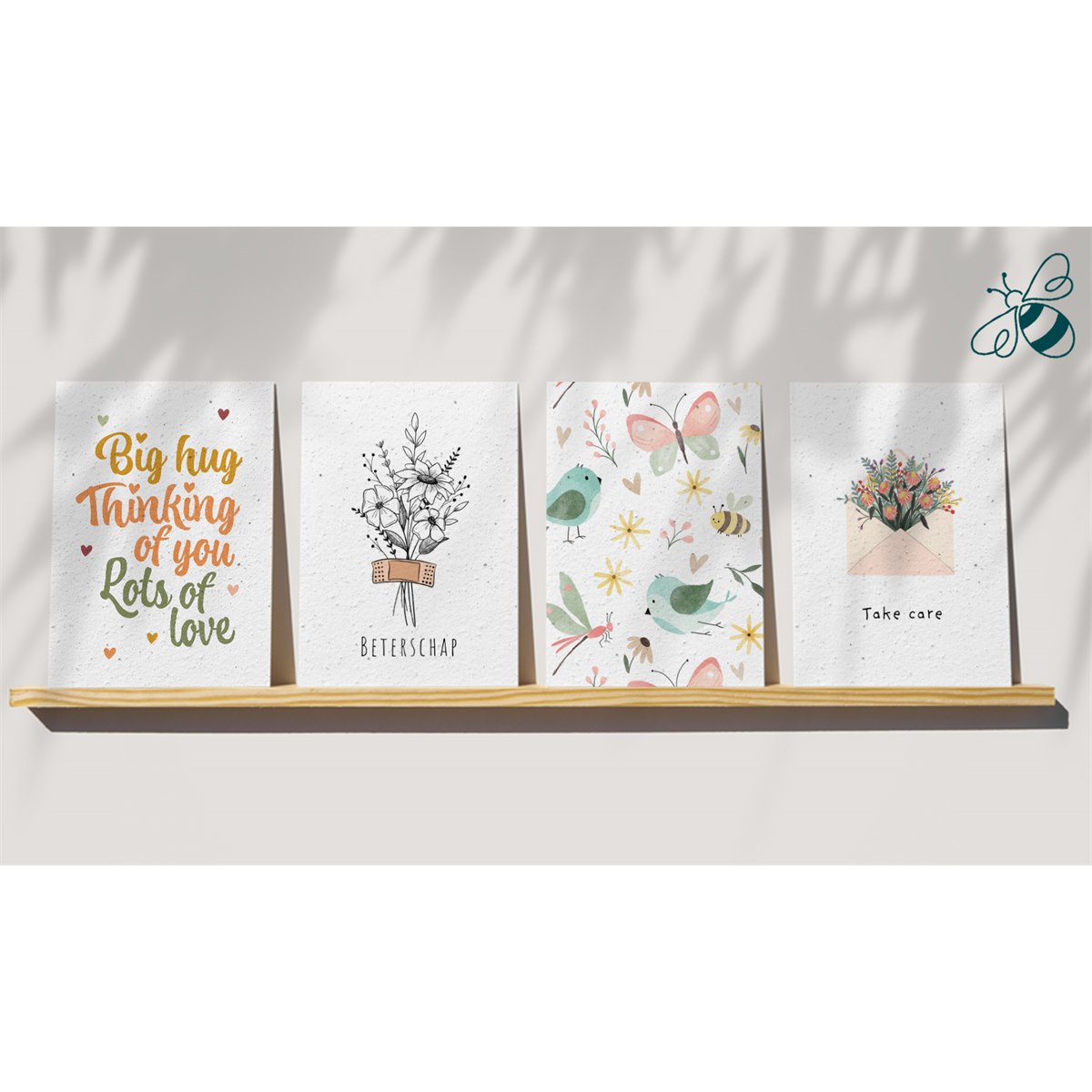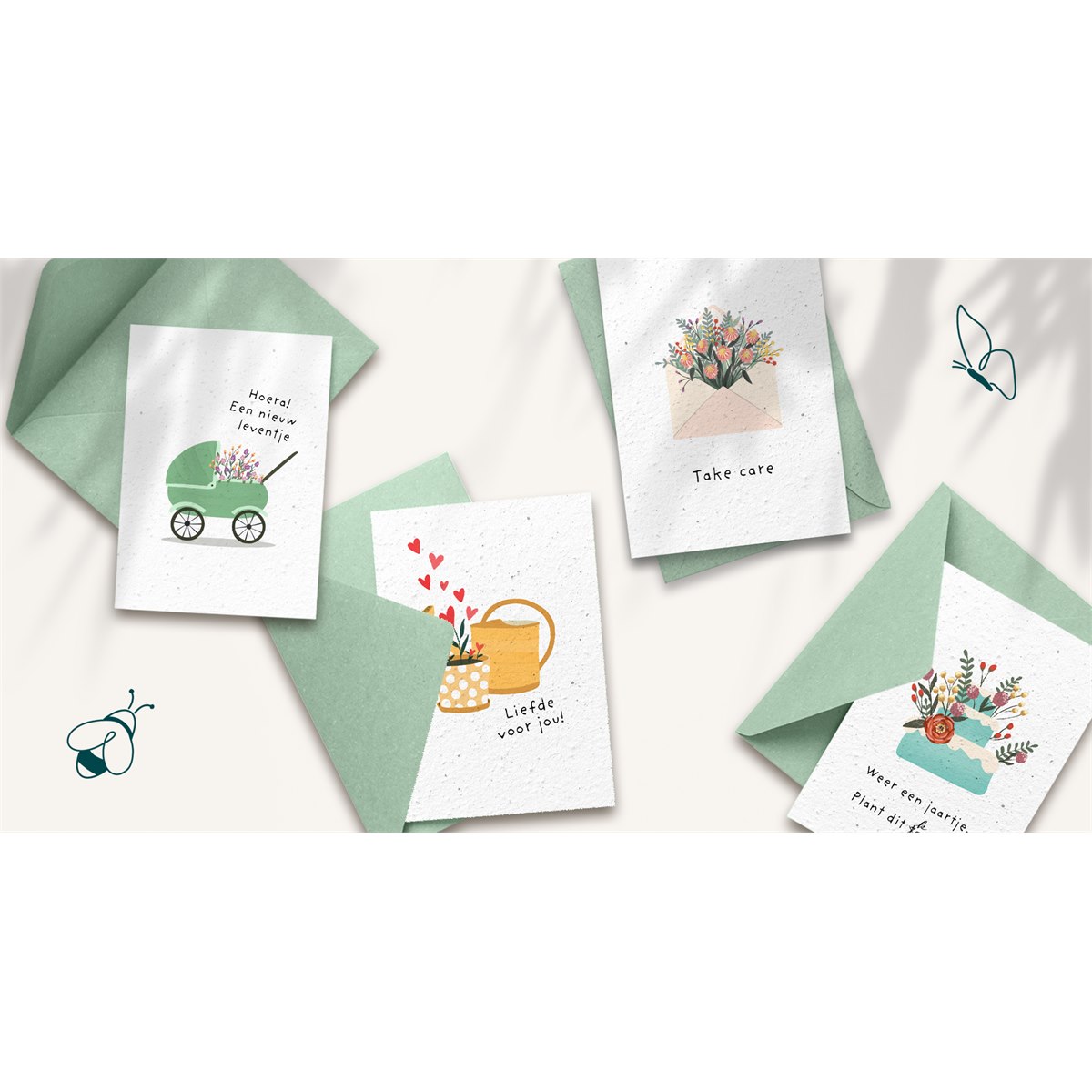 - De kaarten bevatten bloemzaadjes (bijenmix)