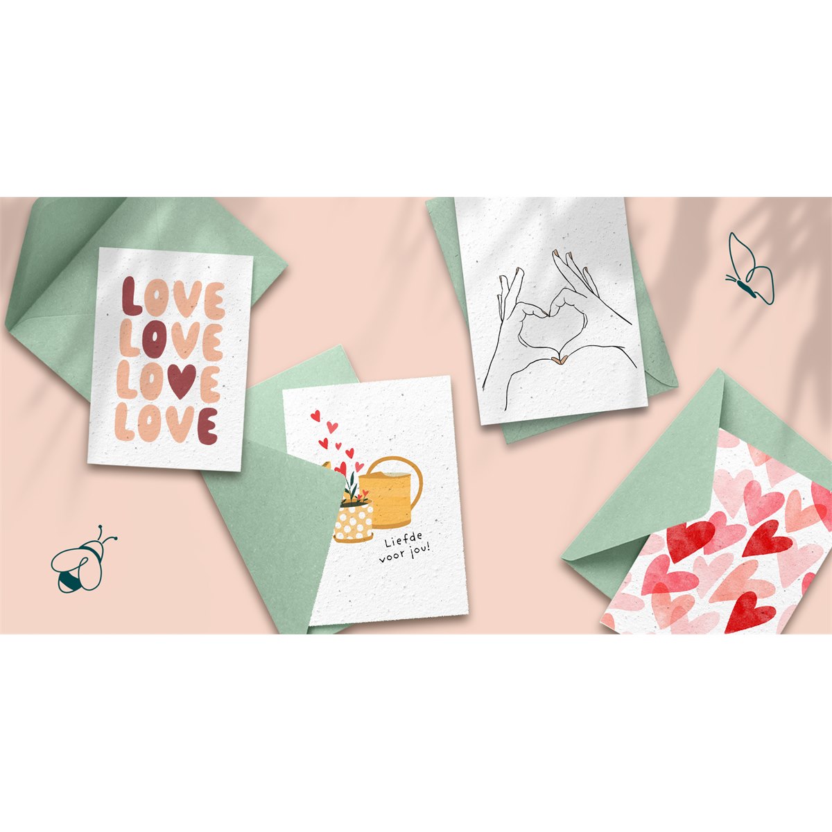 Set van 4 Ansichtkaarten met Bloemzaadjes Gerecycled Papier A6 - Liefde