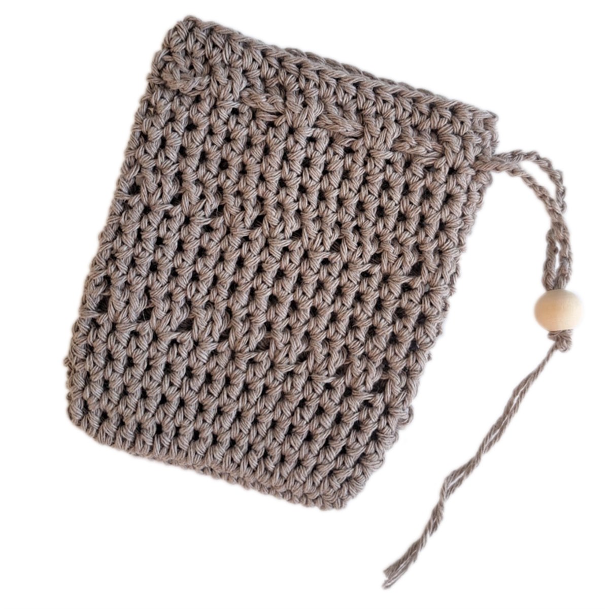 Het zeepnetje van gerecycled katoen is met de hand gemaakt. Het gehaakte milieuvriendelijke zakje is verkrijgbaar in verschillende kleuren. Je doet het zeepzakje dicht met het koordje waaraan een blank houten kraal zit. In een zeepnetje bewaar je makkelijk een stuk zeep of een shampoo bar, veel beter voor het milieu dan alle plastic flessen die anders gebruikt worden. Omdat de zeep tot op het allerlaatst in het zakje blijft zitten verspil je niets en kan je het helemaal op gebruiken.