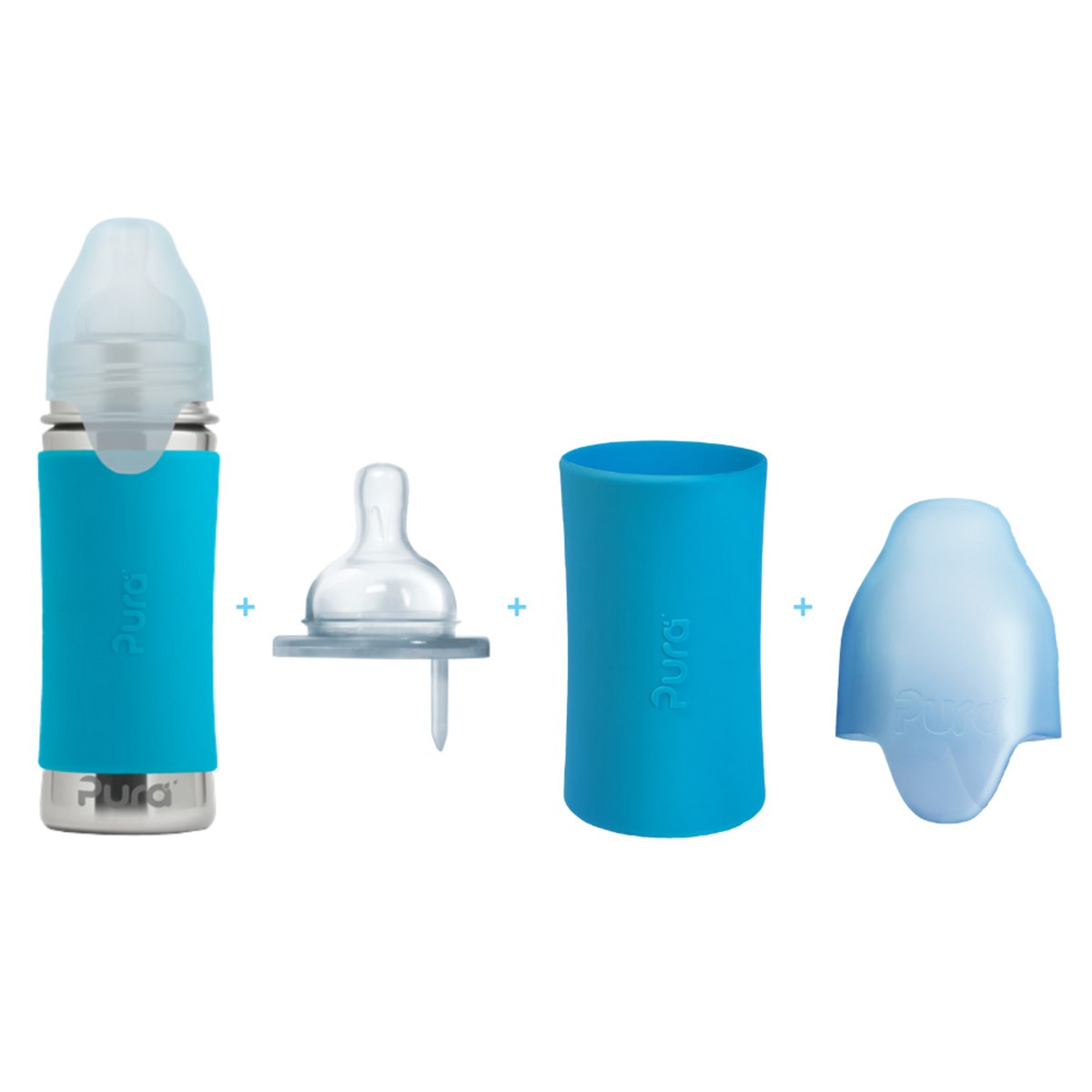 Alle Pura doppen passen op alle Pura flessen. Op deze manier kan de fles meegroeien met het kind. Als het kind te groot is geworden voor de speen, kan er op de babyfles een andere dop worden gezet. Pura heeft de volgende doppen: