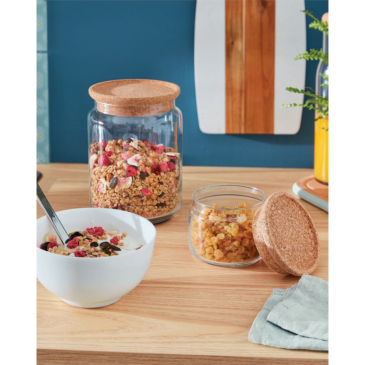 De doorzichtige glazen pot uit de pure jar serie van Luminarc heeft een deksel van kurk en is ideaal voor het bewaren van etenswaren zoals bloem, rijst, suiker, pasta en gedroogd fruit. Het kurk deksel sluit de pot luchtdicht af waardoor de iinhoud lang en goed bewaard kan blijven. Kurk is een hernieuwbaar en milieuvriendelijk materiaal dat biologisch afbreekbaar is. De potten hebben allemaal een diameter van 10,5 cm en hebben verschillende hoogtes.