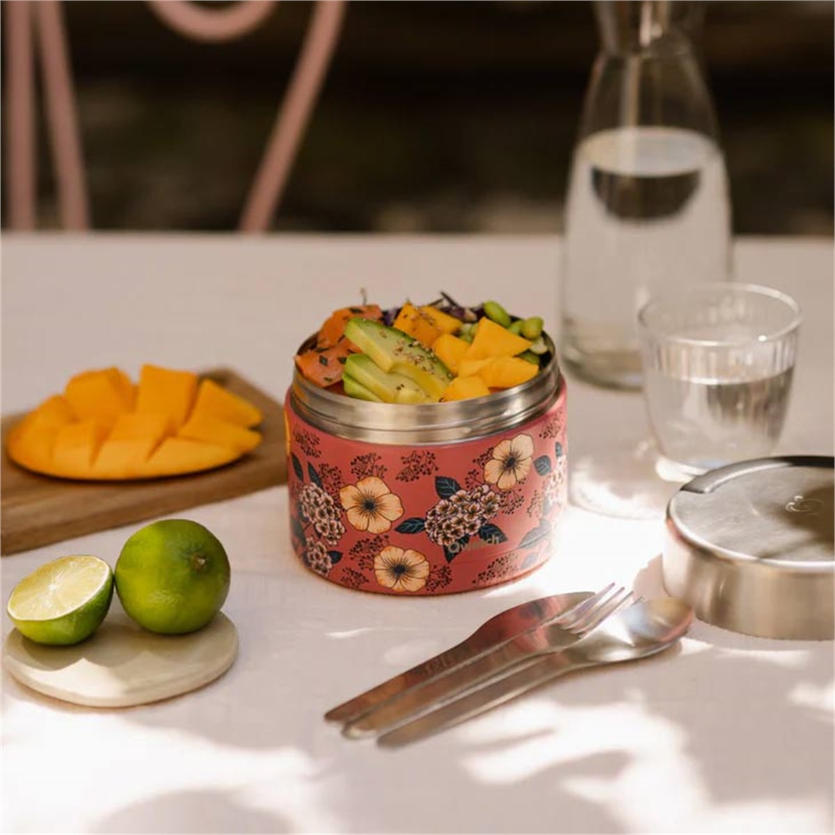 Food Jar Thermos Lekdicht met Handvat 650 ml - Flowers Red