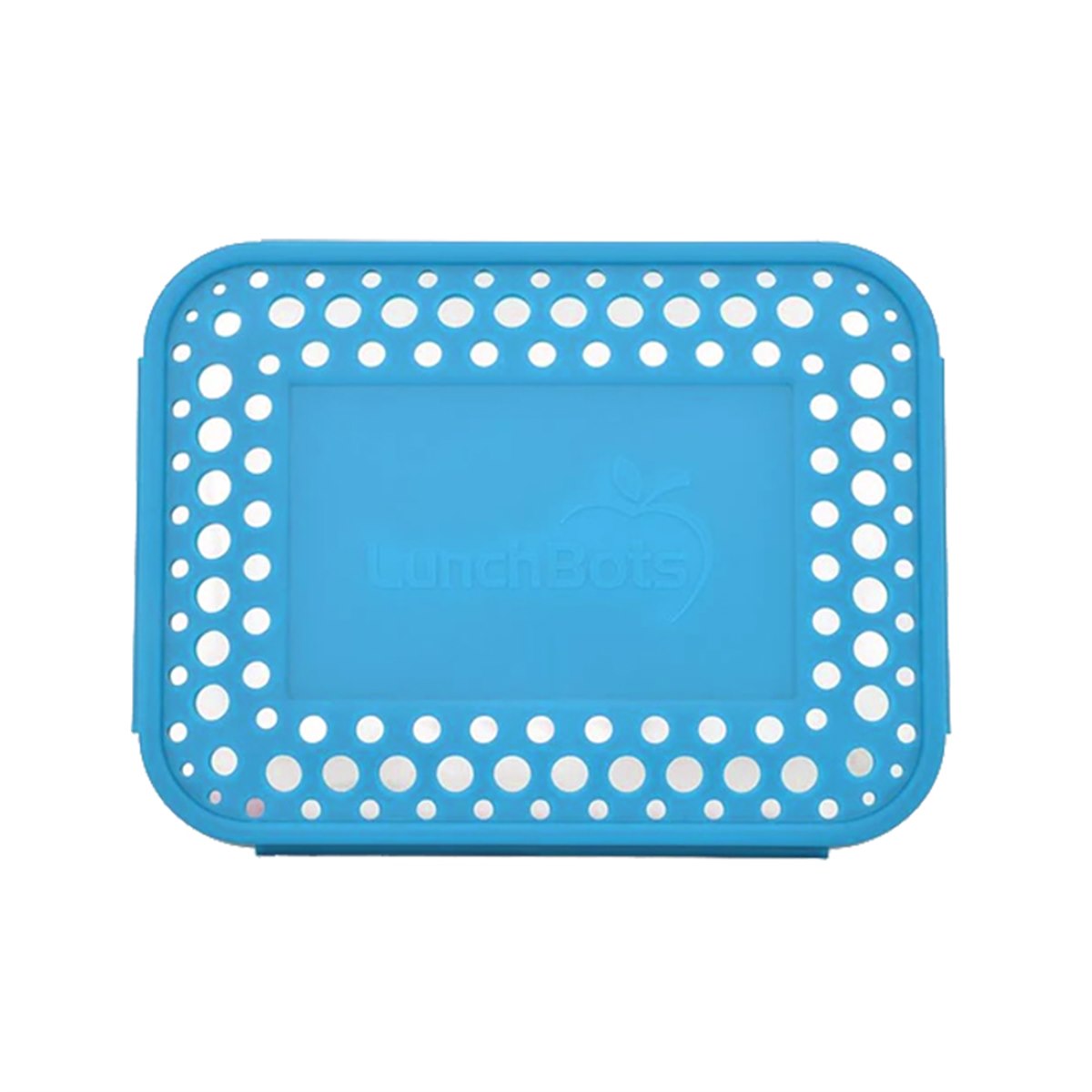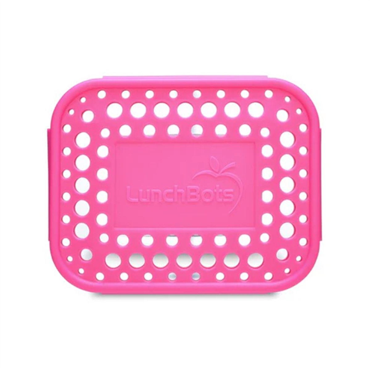 Lunchbots Dots cover voor de Lunchbots RVS broodtrommel Medium. Deze cover click je op het RVS deksel van de broodtrommel om het deksle te beschermen en hem een vroijke kleur te geven. Het deksel past alleen op de Lunchbots medium broodtrommel met een afmeting van 15,2 x 12,7 cm. LET OP: dit is alleen de cover en niet de rvs deksel eronder.