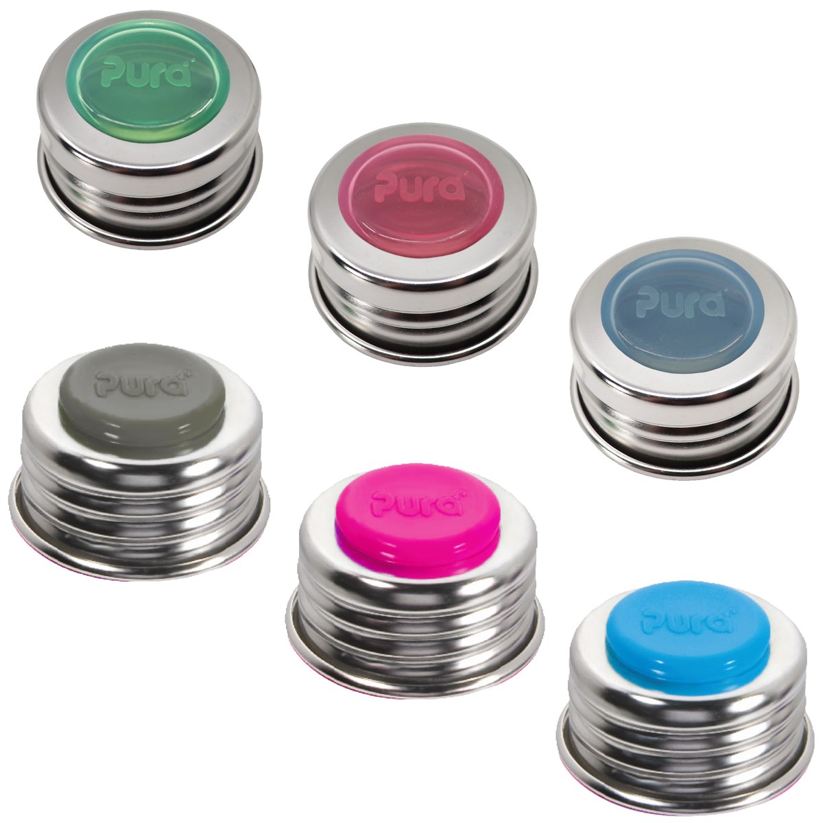 Deze universele dop past op alle Pura flessen. De RVS dop is voorzien van een siliconen aflsuitdisk die de fles lekvrij afsluit. Hij mag in de vaatwasser en is verkrijgbaar met verschillende kleuren disks zodat hij bij jouw Pura fles past.