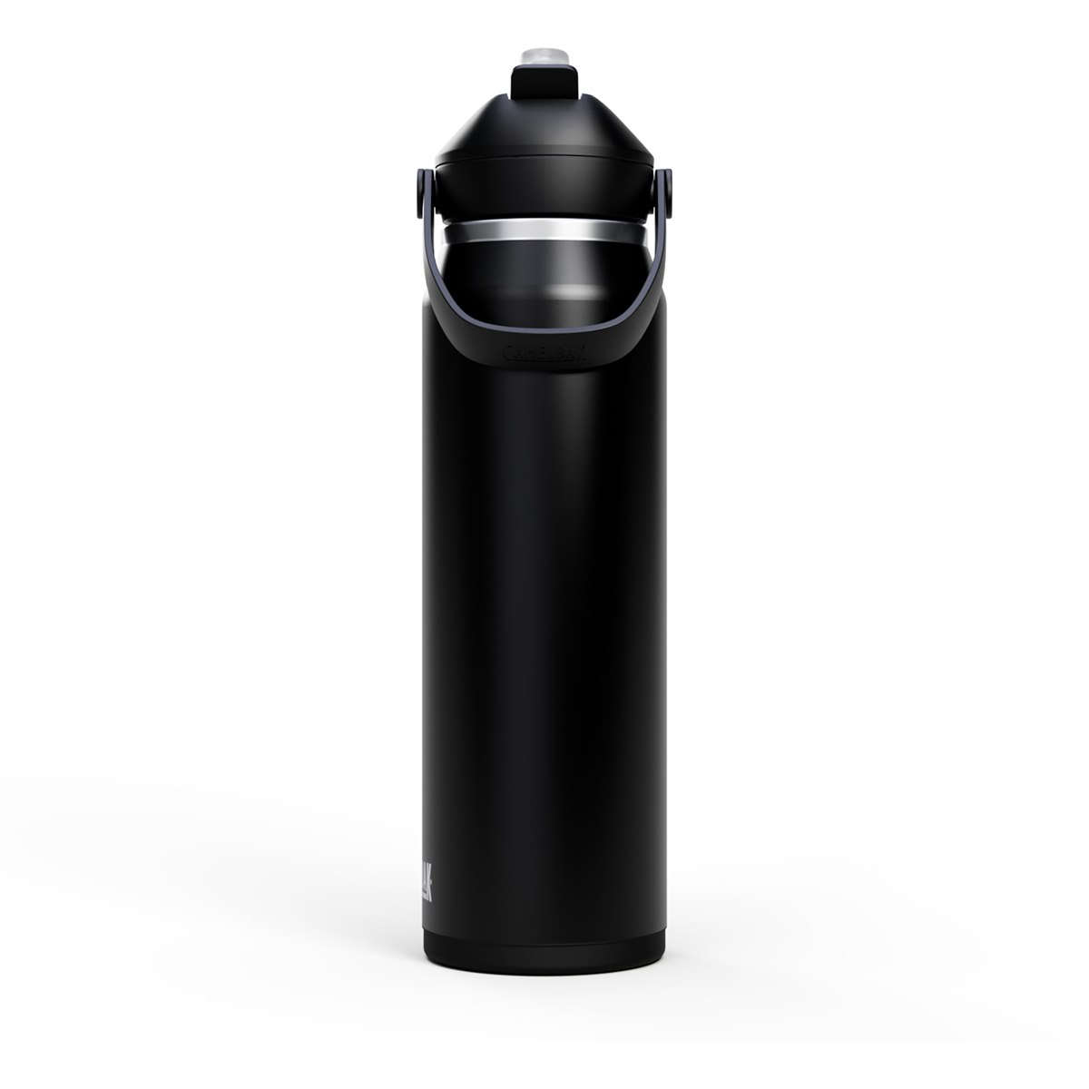 De grote CamelBak Thrive Flip Straw thermosfles is een lekvrije, geïsoleerde drinkfles. Dankzij de vacuüm-geïsoleerde roestvrijstalen wand blijft je drankje urenlang ijskoud. Het ‘flip and sip’-systeem zorgt ervoor dat je moeiteloos kunt drinken: je kantelt de tuit, zuigt zachtjes en de vloeistof stroomt via het rietje omhoog, zonder dat je de fles hoeft te kantelen. Bovenop zit een stofkapje dat het siliconen ventiel beschermt tegen vuil en vuiligheid, praktisch als je onderweg bent of de fles in een tas ligt. Als je de tuit dichtklapt, is de fles volledig lekdicht. Open is hij spill-resistant: hij kan wat spetteren, maar zal je tas niet doorweken.