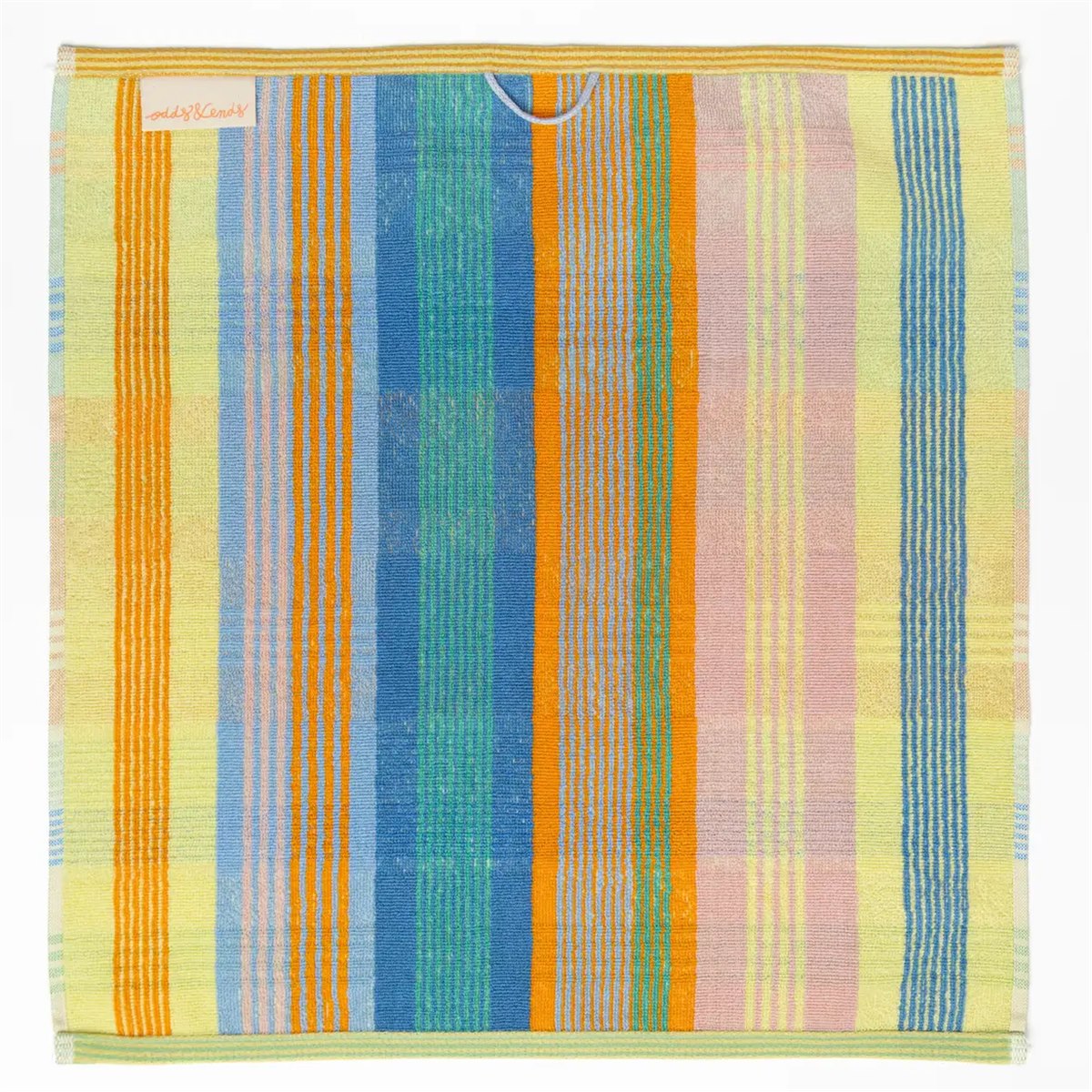 Deze vrolijk gekleurde handdoek uit de Wild Weave serie van Foekje Fleur heeft een afmeting van 50 x 50 cm en is gemaakt van 100% katoen van restanten garen die afkomstig zijn uit de textielindustrie, hij wordt geproduceerd in Portugal. Het vrolijk gekleurde ontwerp combineert badstofweefsel met platweefsel zodat er een mooi oppervlak ontstaat wat snel droogt. De kleurrijke handdoek is een echte eye-catchers en vrolijkt de badkamer of keuken op.