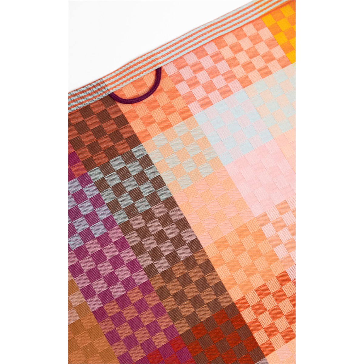 Tijdens het weefproces raken de restgarens op en worden ze vervangen door soortgelijke kleuren. Daardoor kunnen de tinten van de theedoeken iets afwijken van de foto’s, elk exemplaar is dus uniek. Het patroon blijft altijd hetzelfde, maar de kleuren variëren per batch. Zo ontstaat een steeds veranderende collectie met beperkte oplages.