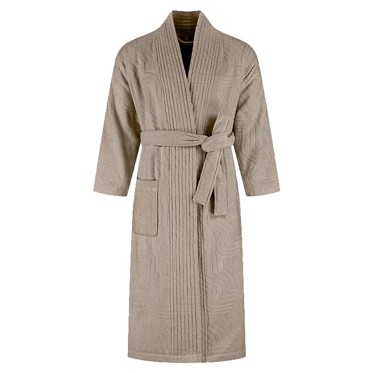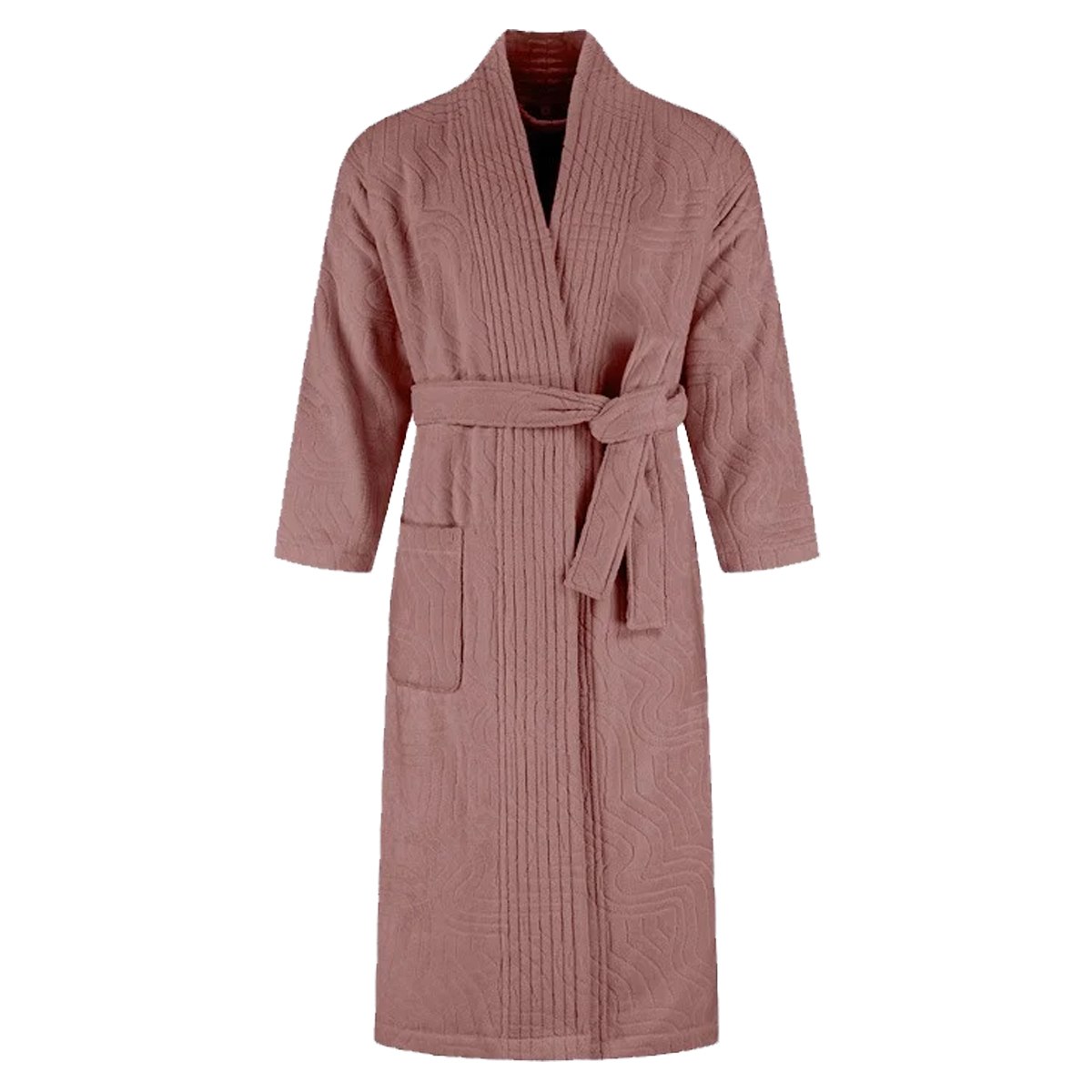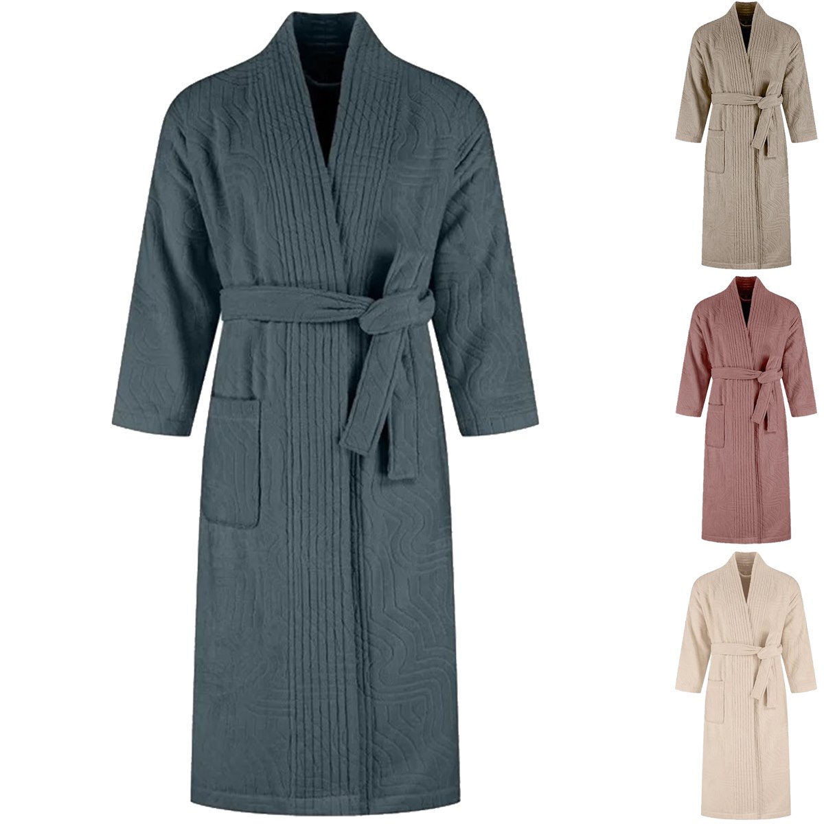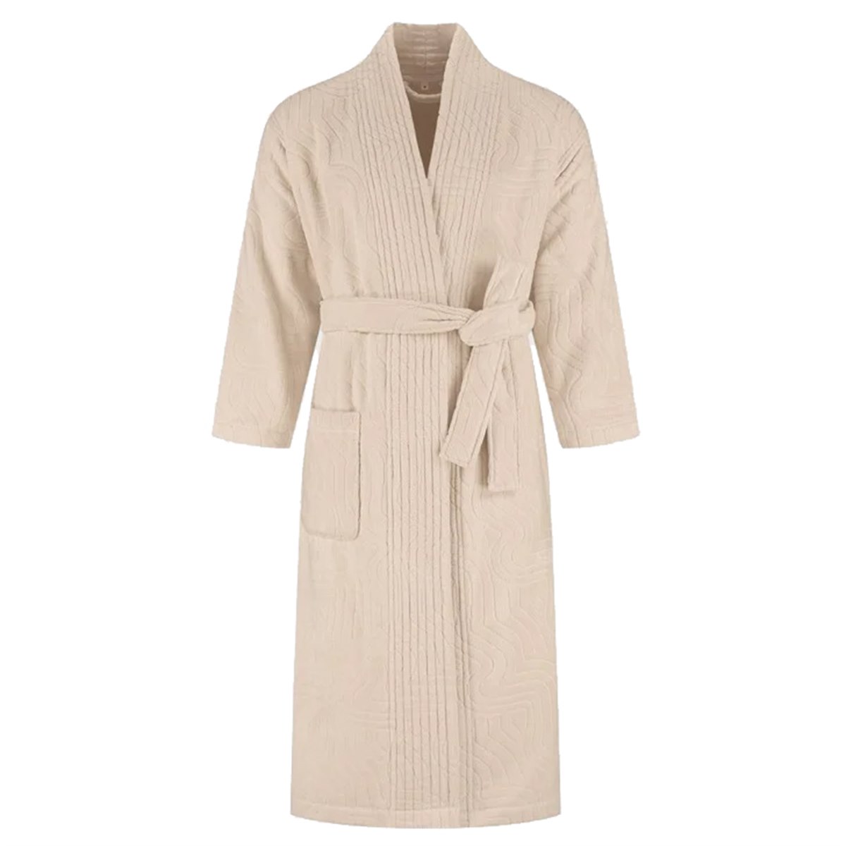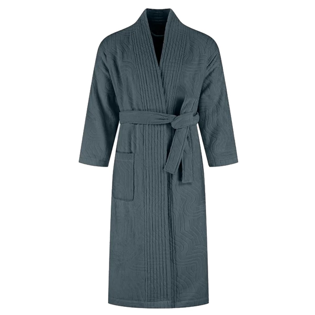 De ceintuur en praktische zakken zorgen dat de badjas comfortabel draagt. De badjas is verantwoord geproduceerd in Portugal onder eerlijke omstandigheden.