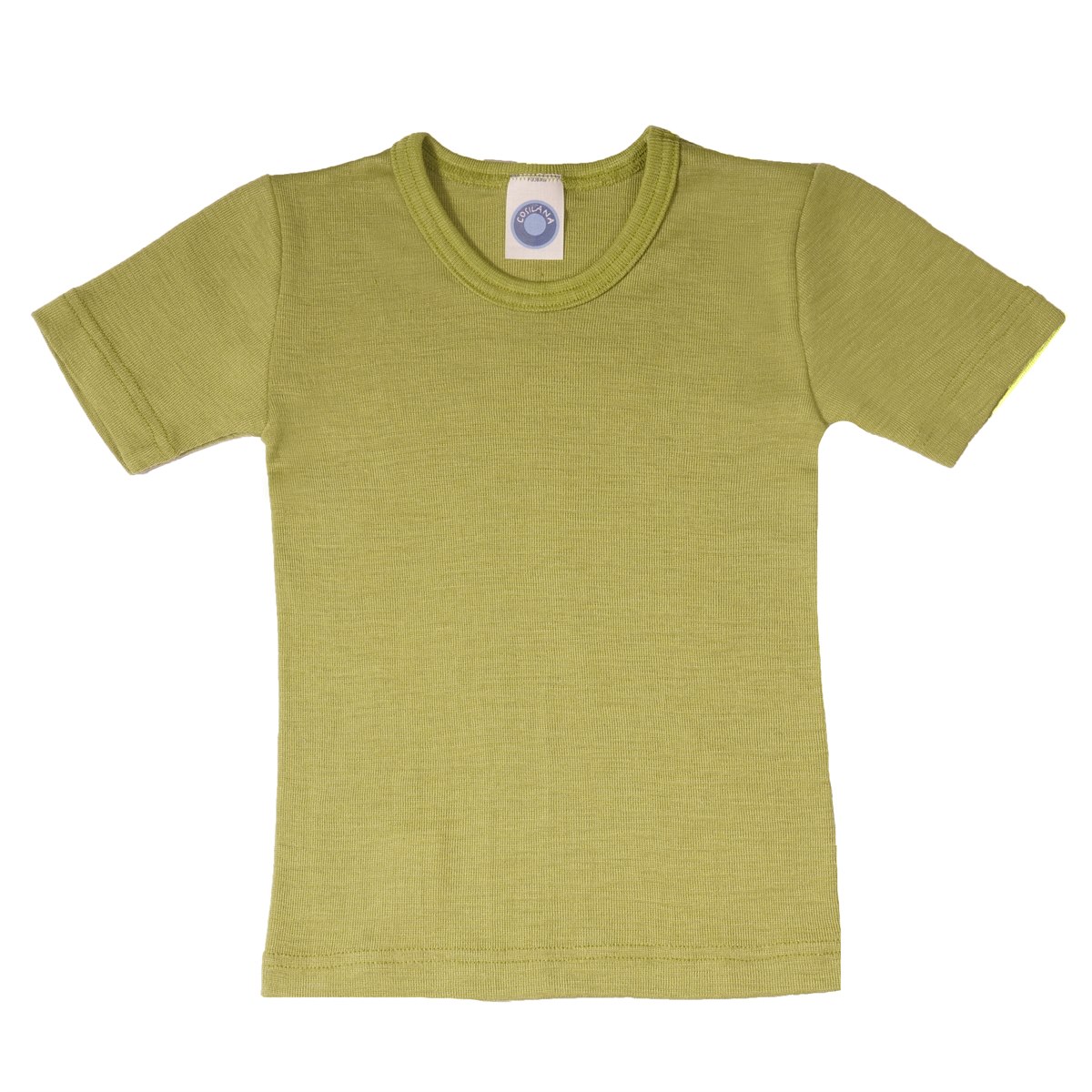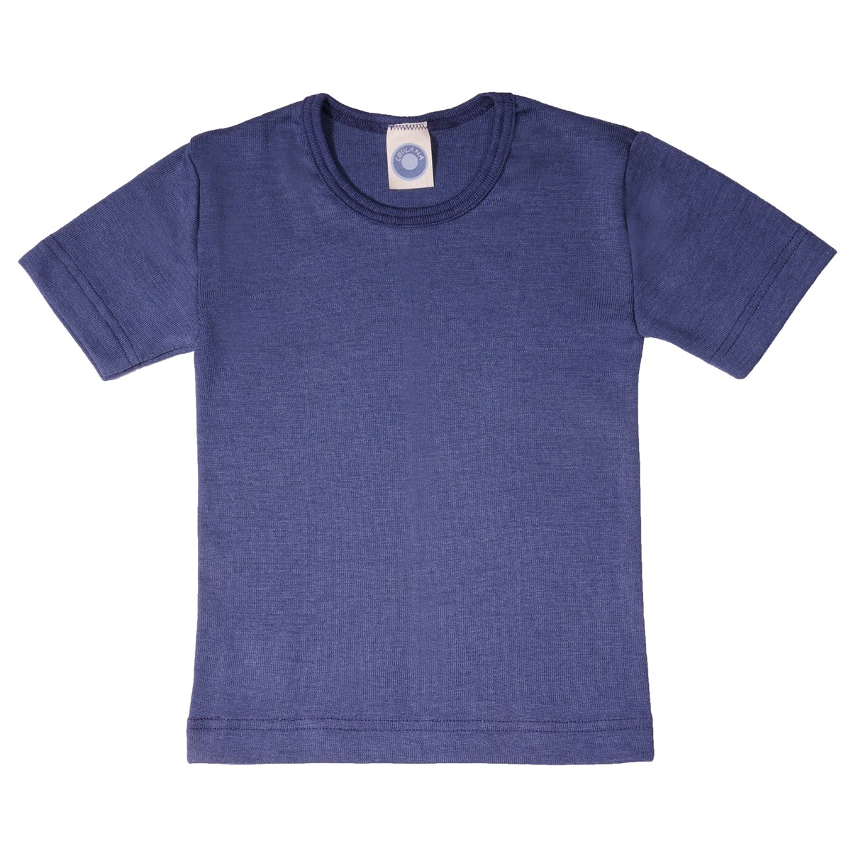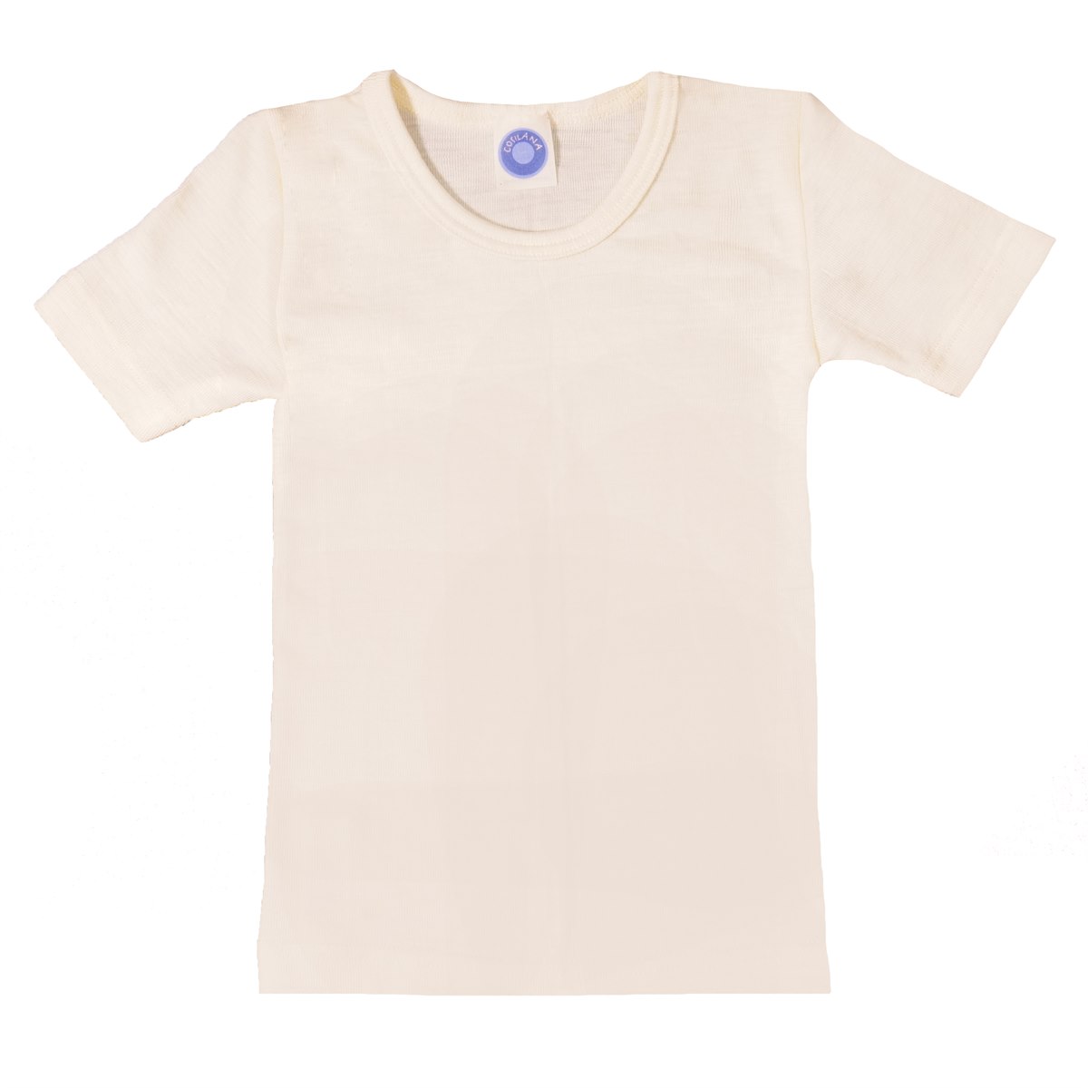 T-shirt met korte mouwen en ronde hals voor jongens en meisjes, gemaakt van 70% biologische merinowol en 30% zijde. Deze combinatie zorgt voor een ademend en temperatuurregulerend shirt dat helpt de huid droog en comfortabel te houden. Wol neemt vocht op en geeft het weer af, terwijl zijde zorgt dat het sipel en zacht aan voelt op de huid. De fijne merinowol kriebelt niet en is geschikt voor de gevoelige huid.