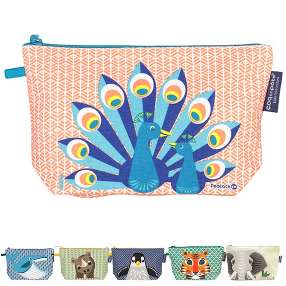 Het vrolijke etui met dieren afbeelding kan gebruikt worden voor pennen en potloden op school, als toilettas of make-up tasje. Door zijn grote formaat past er lekker veel in. Het etui is gemaakt van GOTS gecertificeerd biologisch katoen en sluit met een rits.