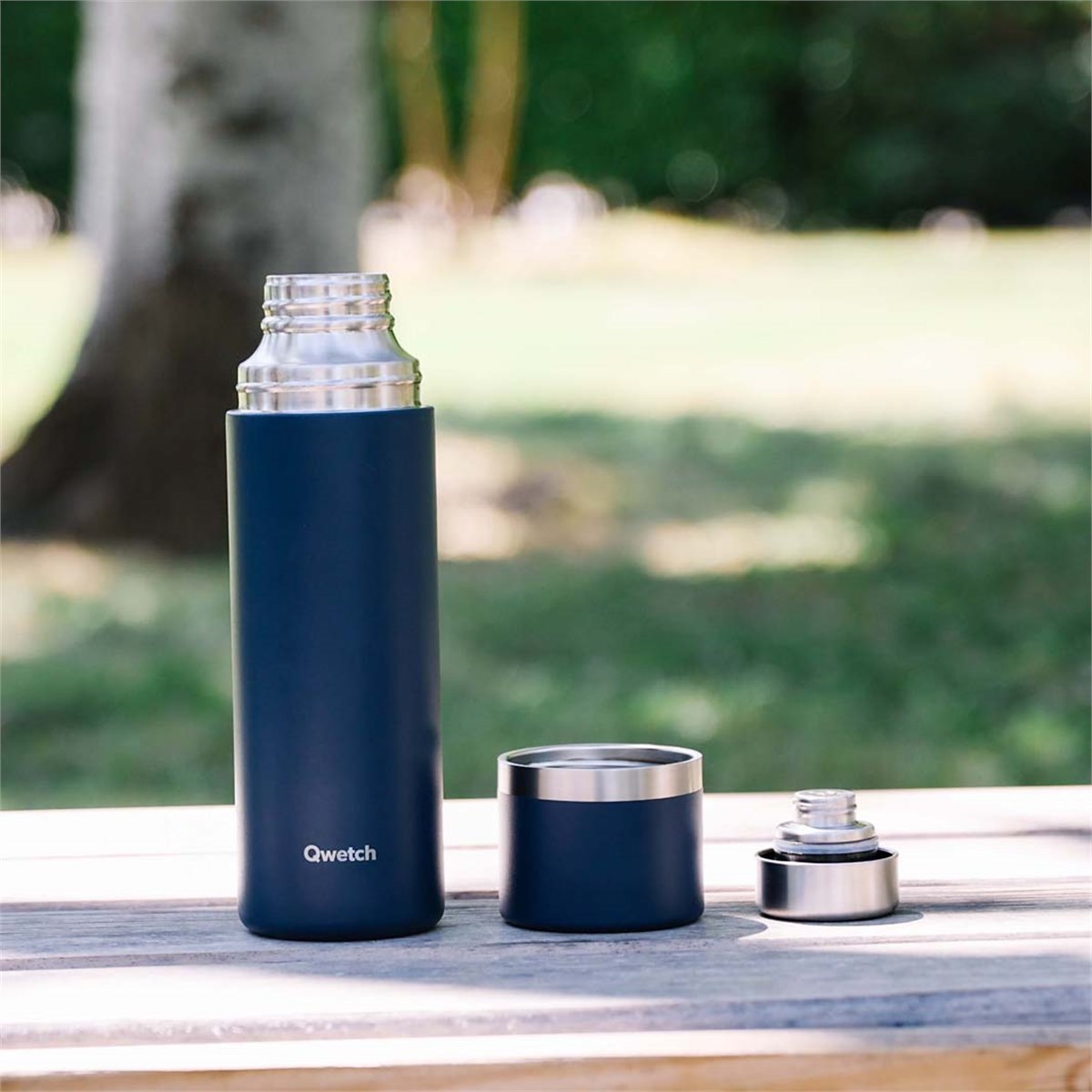 De compacte thermosfles van Qwetch heeft een inhoud van 750 ml en een dubbelwandige dop die fungeert als beker. Het drinken komt alleen met het RVS in aanraking zodat je jouw drank veilig warm of koud kunt houden en mee kunt nemen. De lekdichte insulated fles houdt de drank tot wel 24 uur koel en 12 uur warm.