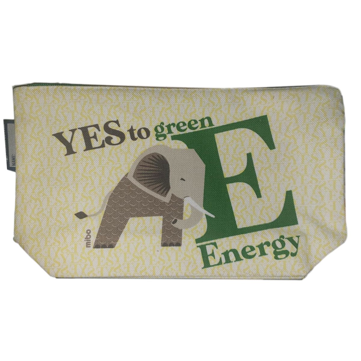 Het etui met de olifant heeft de tekst 'Yes to green energy' achterop staan.