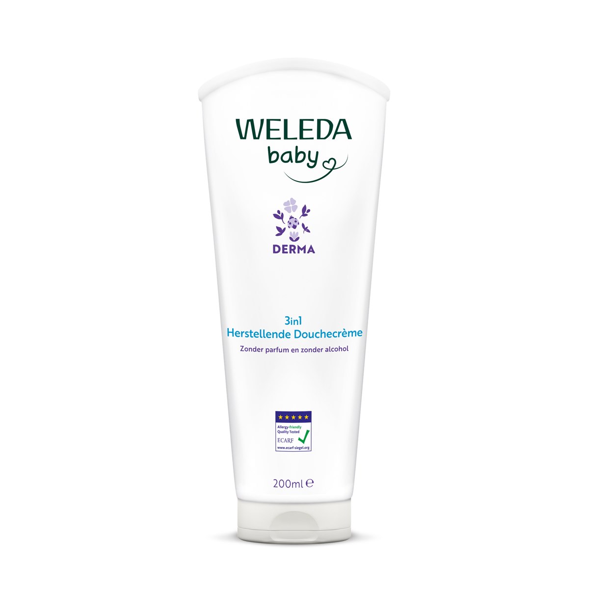 De textuur zit tussen een gel en crème in, romig en makkelijk te gebruiken onder de douche of in bad, en hij hoort bij de Derma-babyverzorgingslijn van Weleda, die samen met dermatologen en apothekers is ontwikkeld voor extreem gevoelige huidtypen. Zo geef je je huid reiniging, verzorging én bescherming in één stap.