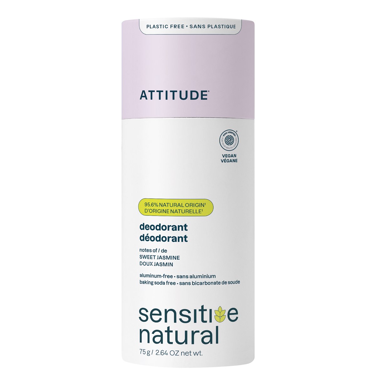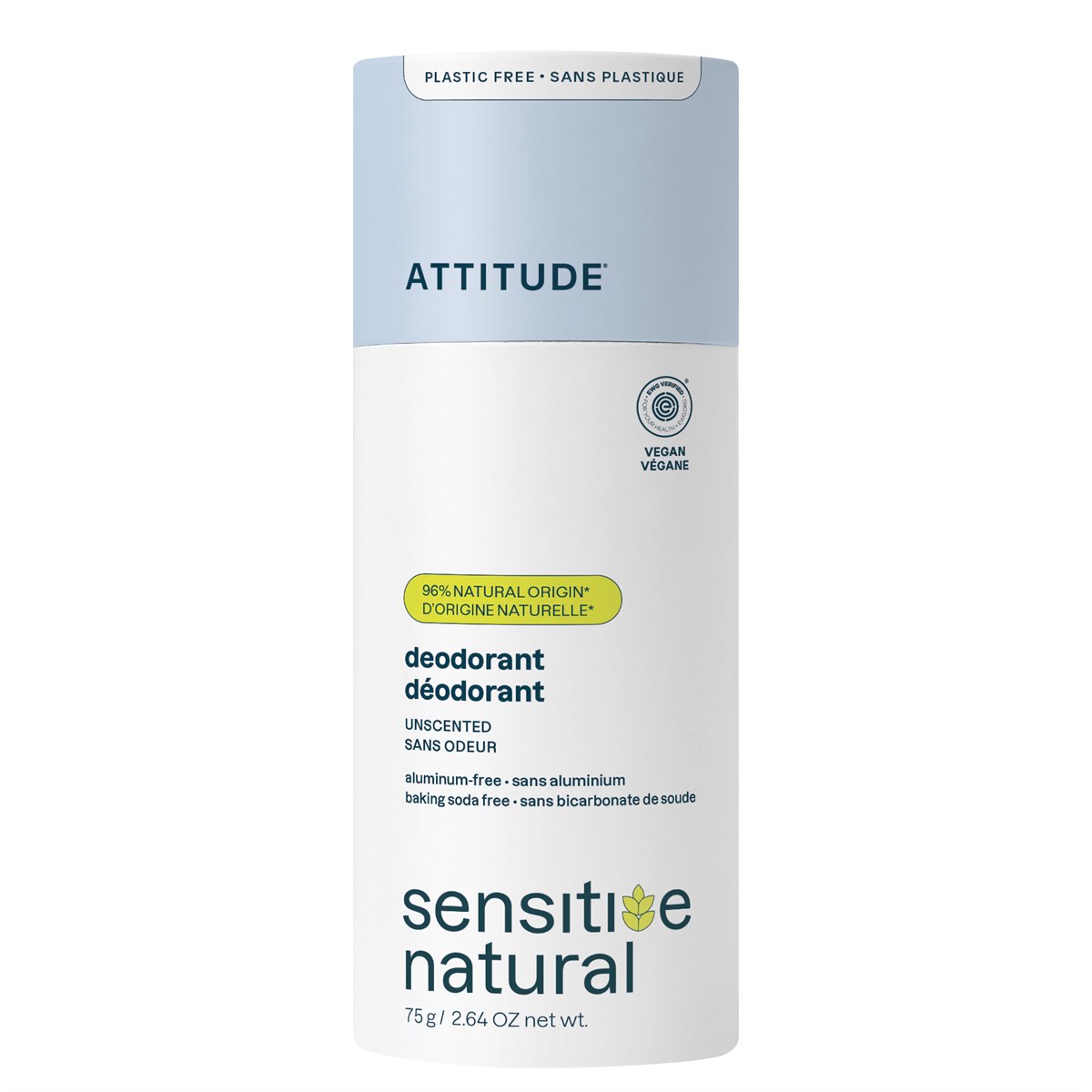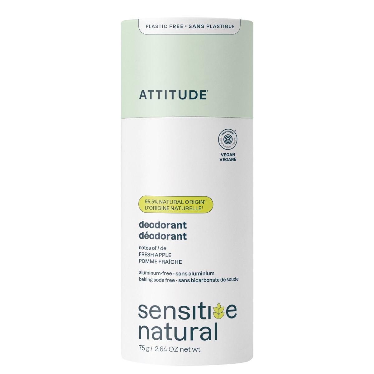 Een deodorantstick op basis van plantaardige en minerale ingrediënten, verrijkt met havermout. Speciaal ontwikkeld voor de gevoelige huid en zonder baking soda. Deze deodorant uit de super leaves lijn van Attitude is verpakt in een plasticvrije, biologisch afbreekbare kartonnen verpakking en past perfect binnen een zero-waste levensstijl.