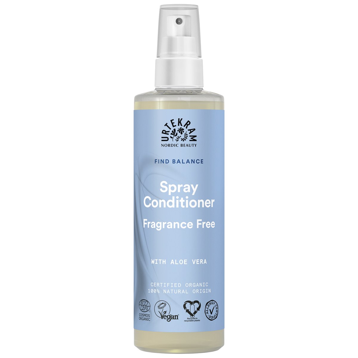 De Urtekram spray conditioners zijn Cosmos Organic gecertificeerd. Cosmos Organic is een keurmerk voor natuurlijke cosmetica. Producten met het Cosmos Organic promoten het gebruik van producten uit de biologische landbouw en respecteren de biodiversiteit, gaan verantwoord om met natuurlijke hulpbronnen en respecteren het milieu, maken gebruik van verwerking en fabricage die schoon zijn en respectvol zijn voor de menselijke gezondheid en het milieu en zetten zich in voor de integratie en ontwikkeling van het concept "groene chemie".